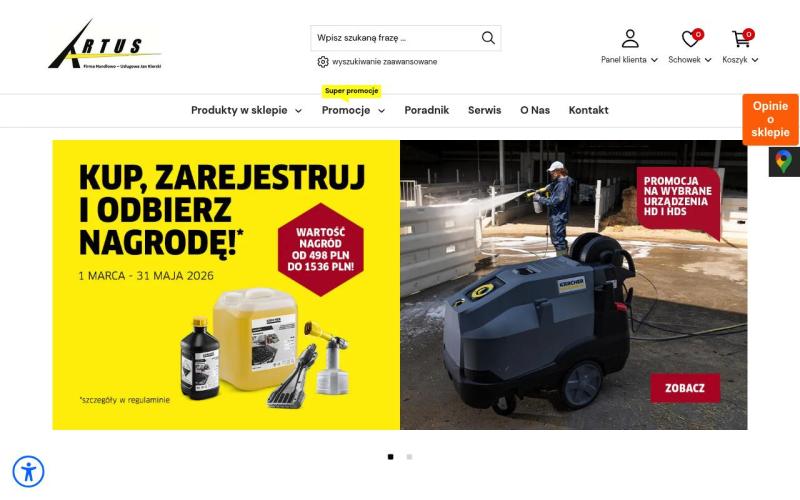 Artuskarcher specjalizuje się w sprzedaży produktów marki Kärcher - światowego lidera w dziedzinie technologii czyszczenia. W ofercie znajdziesz myjki ciśnieniowe, odkurzacze, parownice, automaty szorujące oraz akcesoria. Sklep oferuje zarówno sprzęt dla użytkowników domowych, jak i profesjonalne rozwiązania przemysłowe. Wszystkie produkty objęte są gwarancją producenta i profesjonalnym serwisem technicznym.