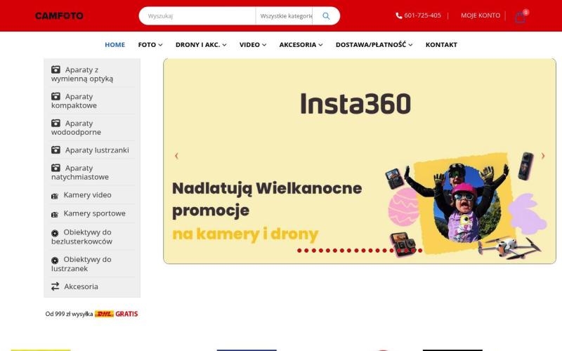 Camfoto to profesjonalny sklep fotograficzny oferujący aparaty, obiektywy i akcesoria foto. Szeroki wybór sprzętu dla fotografów wszystkich poziomów.