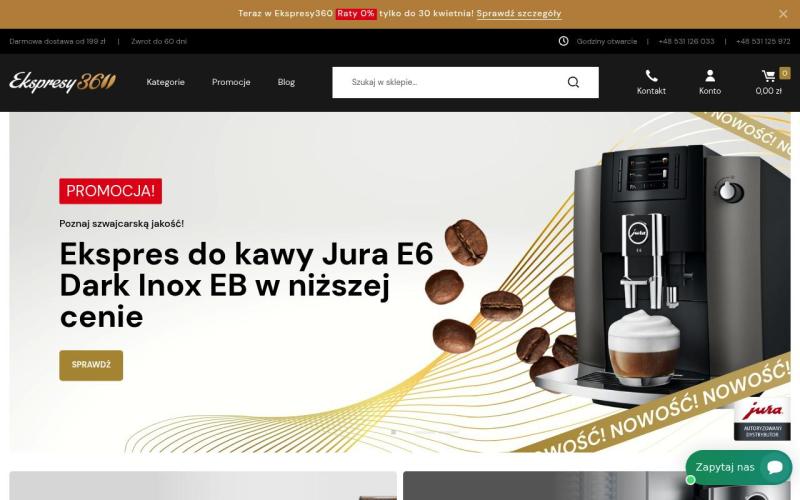 Ekspresy360 to sklep specjalizujący się w ekspresach do kawy i akcesoriach. Oferujemy szeroki wybór urządzeń renomowanych marek z szybką dostawą.