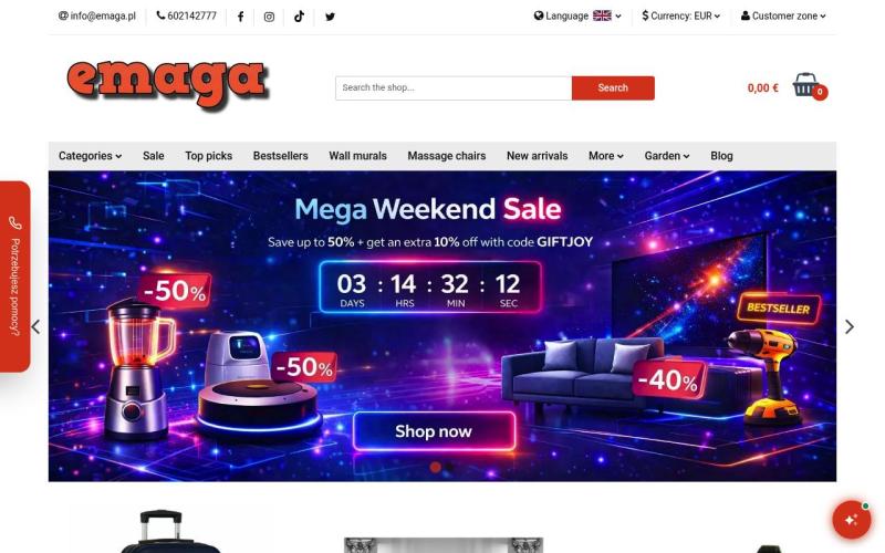 Emaga.pl to nowoczesny sklep internetowy oferujący szeroki asortyment elektroniki, artykułów gospodarstwa domowego i gadżetów w konkurencyjnych cenach.