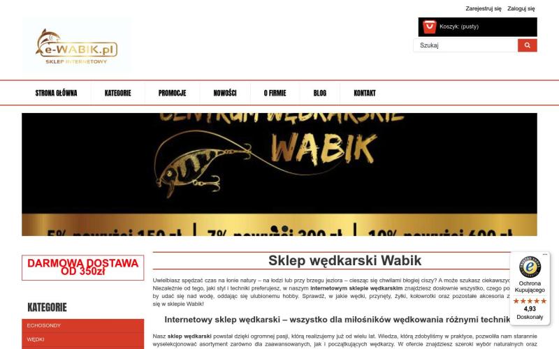 E-Wabik to specjalistyczny sklep wędkarski oferujący szeroki wybór przynęt, akcesoriów i sprzętu wędkarskiego najwyższej jakości.