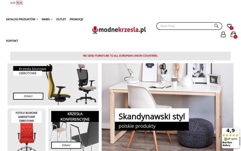 Modnekrzesla.pl to renomowany polski sklep internetowy oferujący szeroki wybór nowoczesnych krzeseł i mebli biurowych. W asortymencie znajdziesz eleganckie krzesła obrotowe, ergonomiczne fotele biurowe, stylowe krzesła do jadalni oraz designerskie meble wypoczynkowe. Sklep współpracuje z uznanymi producentami, gwarantując wysoką jakość wykonania i konkurencyjne ceny. Każdy produkt charakteryzuje się nowoczesnym designem i funkcjonalnością.