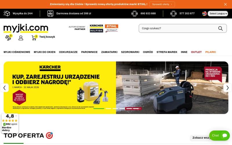 Myjki.com to sklep specjalizujący się w sprzęcie do mycia i czyszczenia. Oferuje szeroki wybór myjek ciśnieniowych i akcesoriów.