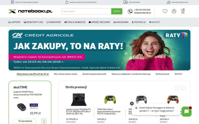 Notebooki.pl to wiodący polski sklep internetowy specjalizujący się w sprzedaży laptopów, notebooków i akcesoriów komputerowych wszystkich renomowanych marek.