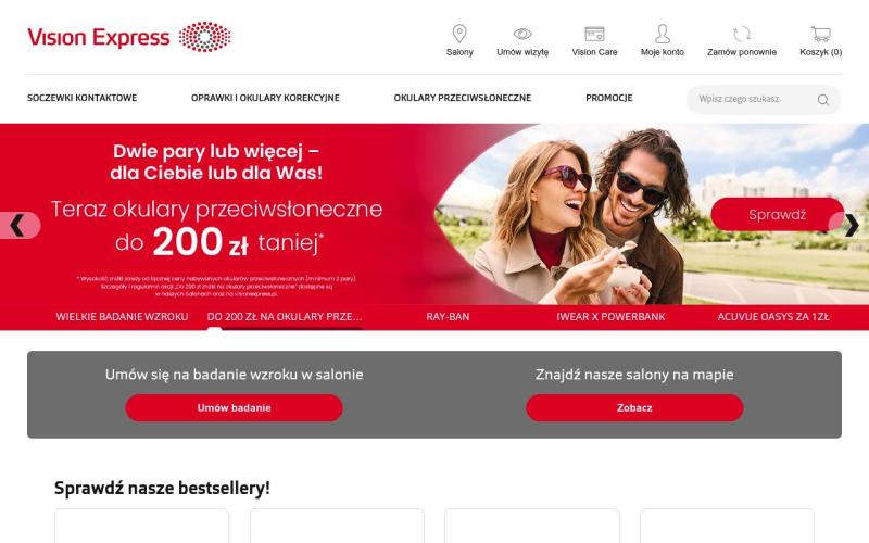 Vision Express to wiodąca sieć optyczna w Polsce oferująca okulary, soczewki kontaktowe i badania wzroku. Profesjonalna obsługa i szeroki wybór marek.