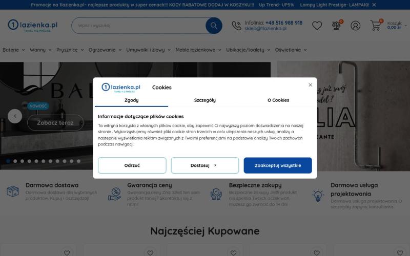 1Lazienka.pl - ведущий польский интернет-магазин сантехники, мебели для ванной и товаров для обустройства ванных комнат с широким ассортиментом качественной продукции.