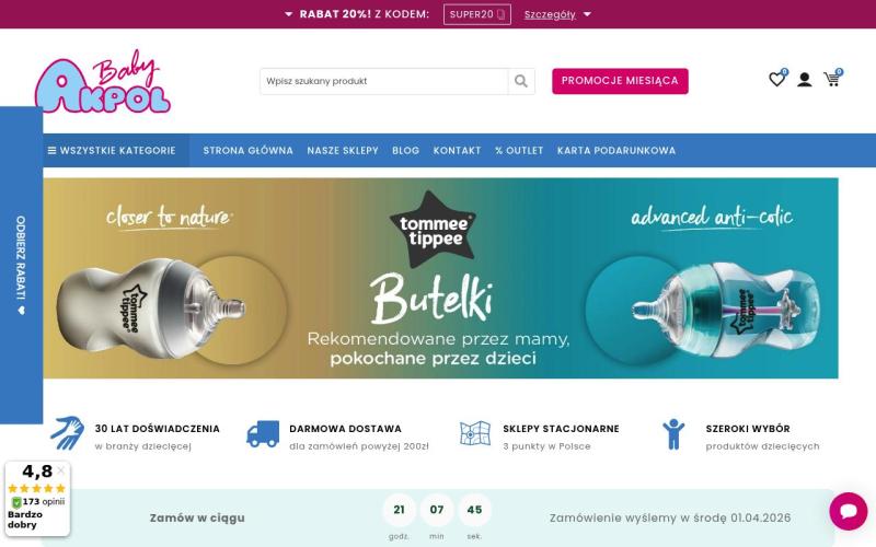 Akpol Baby – ведущий польский магазин детских товаров, предлагающий качественную продукцию для малышей и детей всех возрастов. В каталоге представлены детская одежда, обувь, игрушки, коляски, автокресла, товары для кормления и ухода. Магазин сотрудничает с проверенными европейскими брендами, гарантируя безопасность и высокое качество каждого товара. Удобная доставка из Польши в Украину.