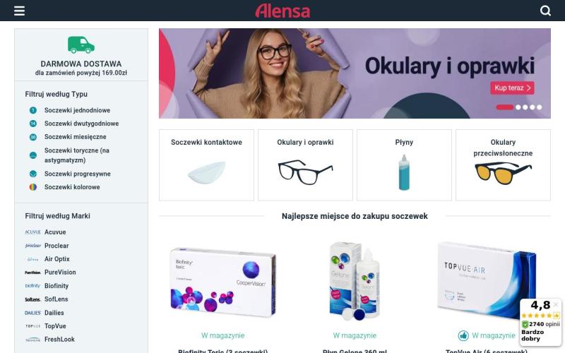 Alensa.pl - крупнейший европейский интернет-магазин контактных линз, очков и товаров для ухода за глазами с доставкой из Польши в Украину.