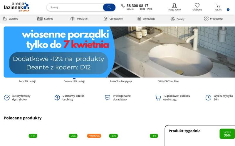 Arenalazienek.pl предлагает полный спектр товаров для обустройства ванных комнат и санузлов. В каталоге представлены смесители, душевые системы, ванны, раковины, унитазы, мебель для ванной, зеркала и аксессуары от ведущих европейских производителей. Магазин специализируется на качественной сантехнике в различных ценовых категориях - от бюджетных до премиальных решений.