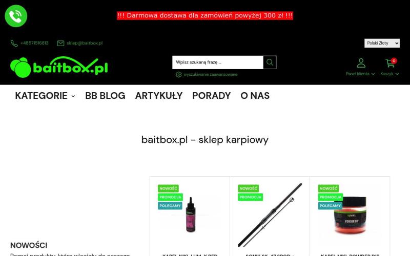 Baitbox.pl — ведущий польский интернет-магазин товаров для рыбалки. Широкий ассортимент снастей, приманок, прикормки от известных брендов по доступным ценам.