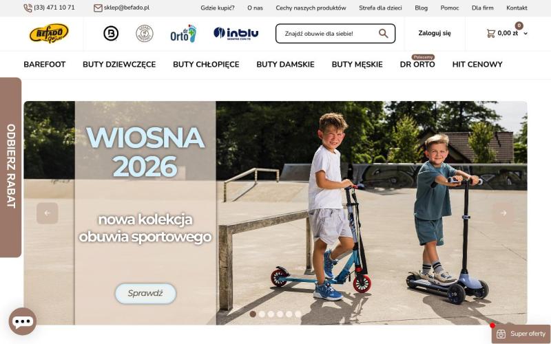 Befado — один из крупнейших производителей детской обуви в Польше, основанный в 1990 году. Компания специализируется на создании комфортной и безопасной обуви для детей от 6 месяцев до 14 лет. Вся продукция изготавливается из натуральных материалов с соблюдением европейских стандартов качества. Обувь Befado отличается ортопедическими свойствами, яркими дизайнами и доступными ценами.