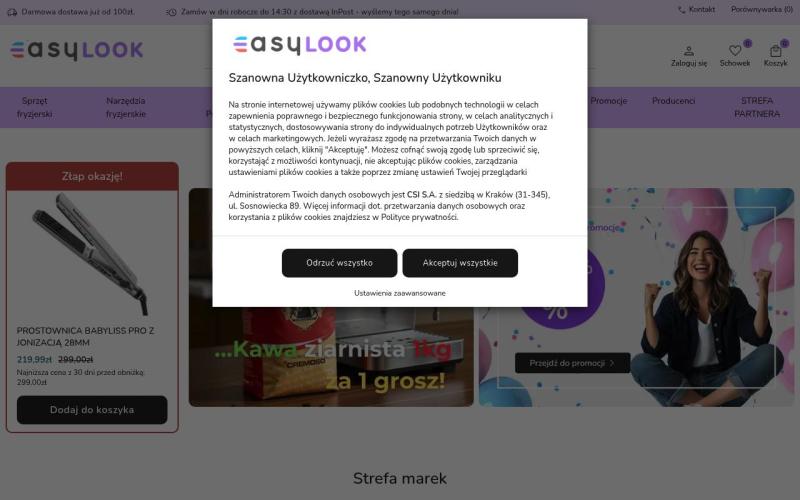 Easylook.pl - популярный польский магазин модной одежды, обуви и аксессуаров для мужчин и женщин. В ассортименте представлены актуальные коллекции от европейских брендов: повседневная и деловая одежда, обувь, сумки, украшения. Магазин предлагает качественные товары по привлекательным ценам с регулярными акциями и распродажами. Удобная навигация по категориям и размерам поможет быстро найти нужные товары.