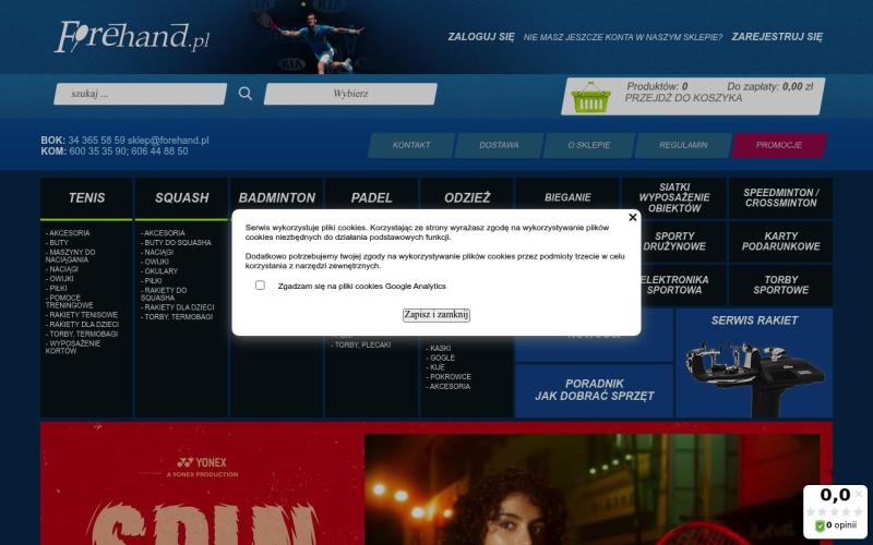 Forehand.pl — специализированный магазин спортивного инвентаря и экипировки для тенниса, бадминтона и других ракетных видов спорта.