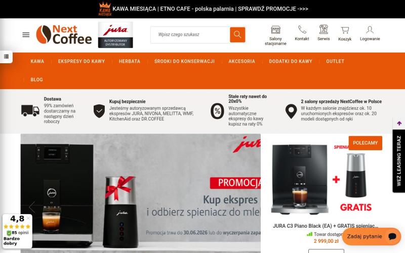 Nextcoffee — польский интернет-магазин кофе и кофейного оборудования. Широкий ассортимент зерен, капсул, кофемашин и аксессуаров для приготовления идеального кофе.