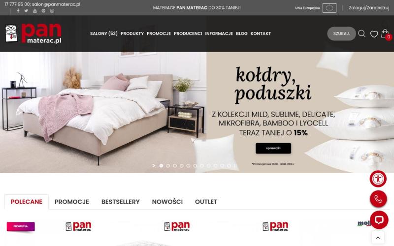 Panmaterac - один из крупнейших польских интернет-магазинов, специализирующийся на продаже матрасов, подушек, одеял и других товаров для сна. Компания предлагает широкий ассортимент продукции от ведущих европейских производителей: ортопедические и анатомические матрасы, подушки с различными наполнителями, качественное постельное белье. Все товары сертифицированы и отвечают европейским стандартам качества.