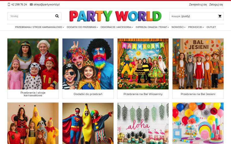 Partyworld.pl - крупнейший интернет-магазин товаров для праздников в Польше. Огромный выбор украшений, костюмов и аксессуаров для любых торжеств.