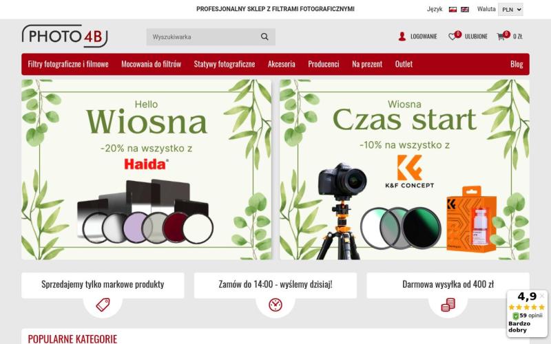Photo4B.pl - польский интернет-магазин фототехники, предлагающий широкий ассортимент камер, объективов, аксессуаров и оборудования для фотографии от ведущих брендов.