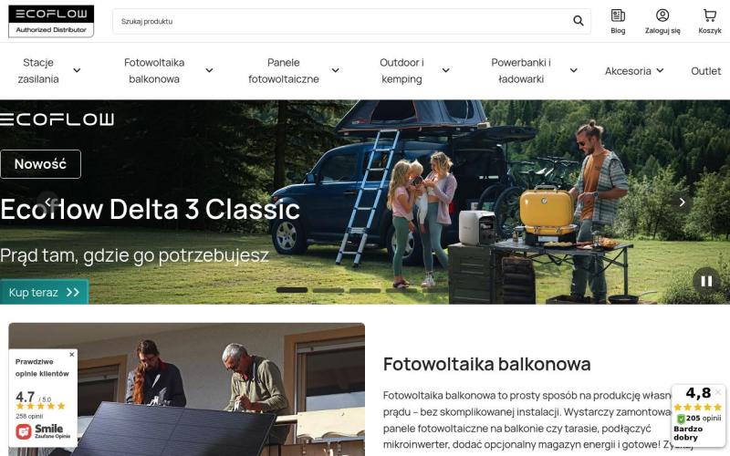 Sklep Ecoflow предлагает полный ассортимент продукции EcoFlow - от компактных power bank до мощных портативных электростанций и солнечных панелей. Магазин является официальным дистрибьютором бренда в Польше, что гарантирует подлинность товаров и официальную гарантию. В каталоге представлены популярные модели Delta, River и солнечные панели различной мощности для автономного питания дома, дачи или в походах.