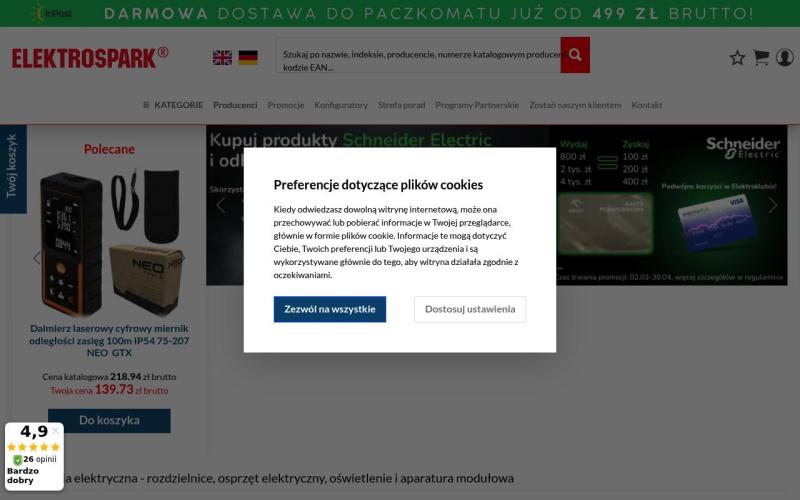 Sklep Elektrospark - польский интернет-магазин электротехники и освещения с широким ассортиментом качественных товаров по доступным ценам.