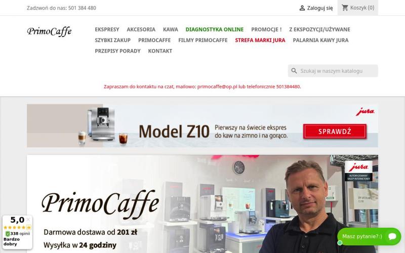 Primocaffe - специализированный польский магазин для настоящих кофеманов. В ассортименте представлен широкий выбор премиального кофе в зернах, молотого кофе, профессиональные и домашние кофемашины, а также все необходимые аксессуары для приготовления идеального напитка. Магазин сотрудничает с лучшими обжарщиками и производителями кофейного оборудования, гарантируя высочайшее качество продукции.