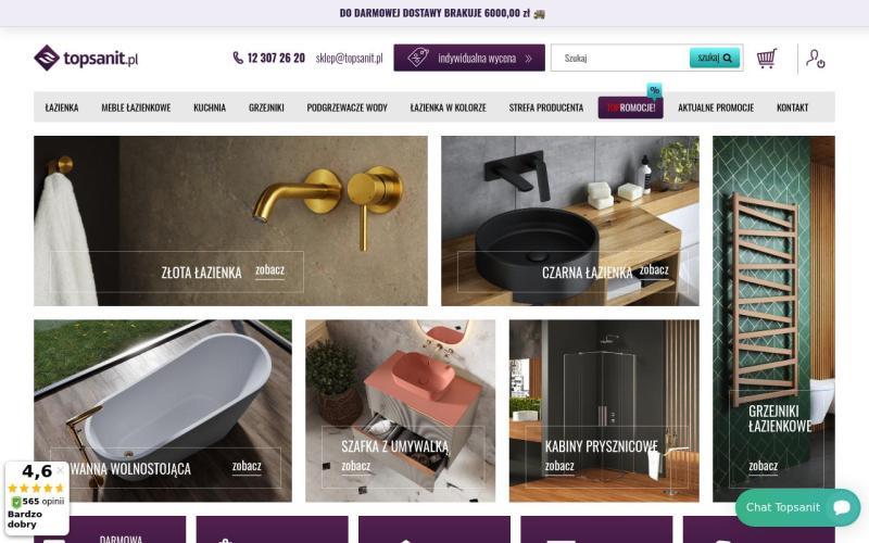 Topsanit - польский интернет-магазин сантехники премиум-класса с широким ассортиментом качественных товаров для ванной комнаты.