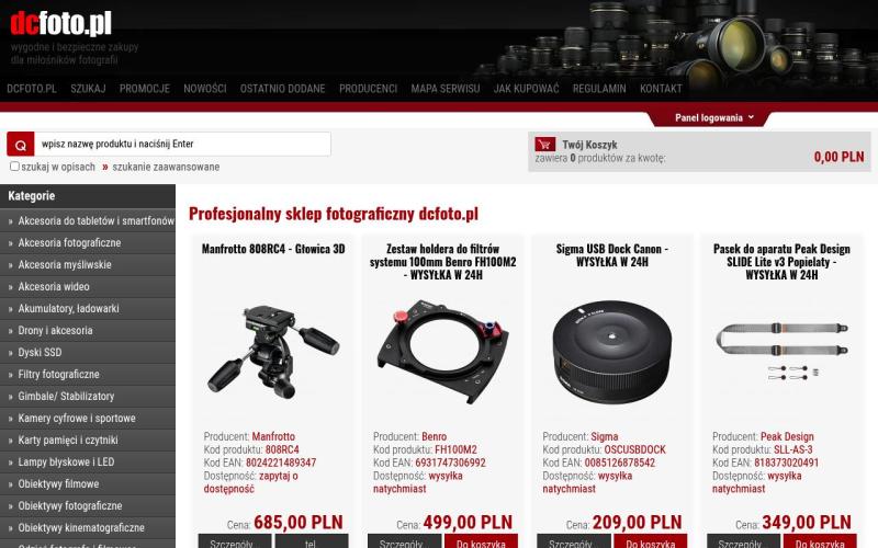 Dcfoto - провідний польський магазин фототехніки та аксесуарів. Широкий асортимент камер, об'єктивів, студійного обладнання за вигідними цінами.