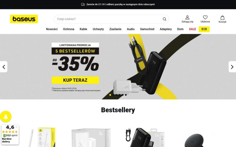 E Baseus пропонує широкий асортимент оригінальних аксесуарів для мобільних пристроїв: зарядні пристрої, Power Bank, кабелі, захисні скла, чохли та автомобільні аксесуари. Всі товари сертифіковані та мають офіційну гарантію. Швидка доставка з Польщі в Україну протягом 5-7 днів. Працюємо тільки з оригінальною продукцією Baseus за конкурентними цінами.