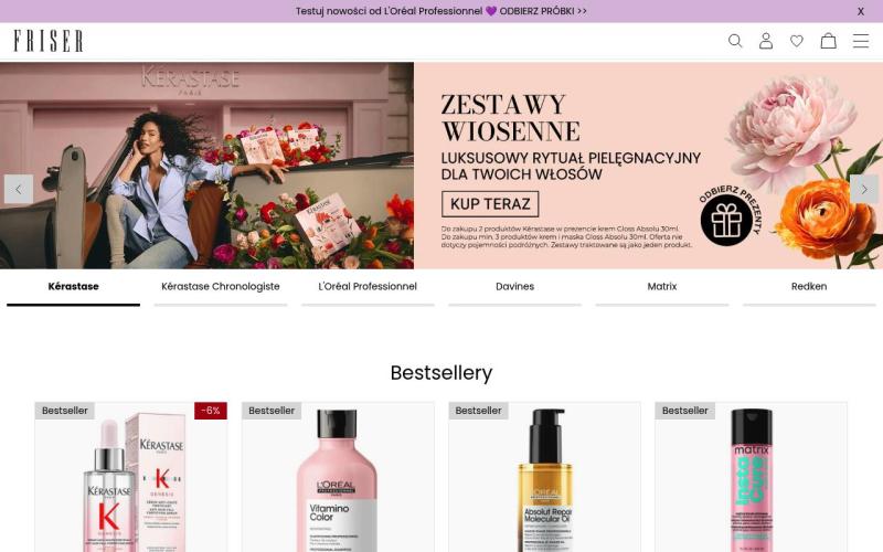 Friser.pl - польський онлайн-магазин товарів для краси та догляду. Широкий асортимент косметики, засобів для волосся та аксесуарів від відомих європейських брендів.