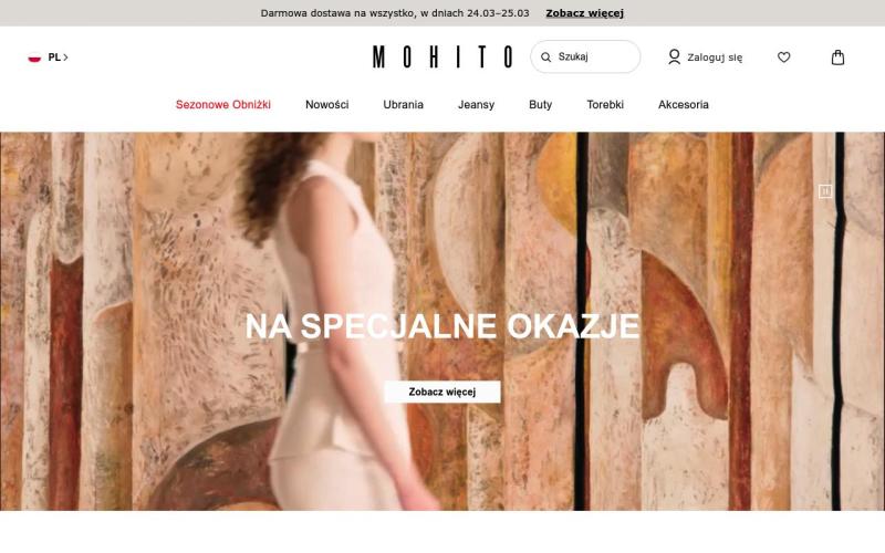 Mohito - це один з найпопулярніших польських брендів жіночого одягу, який пропонує стильні та актуальні колекції за доступними цінами. У магазині ви знайдете широкий асортимент платтів, блузок, джинсів, верхнього одягу та аксесуарів. Бренд відомий своїми трендовими дизайнами та високою якістю матеріалів. Замовляйте улюблені речі з Mohito з доставкою в Україну.