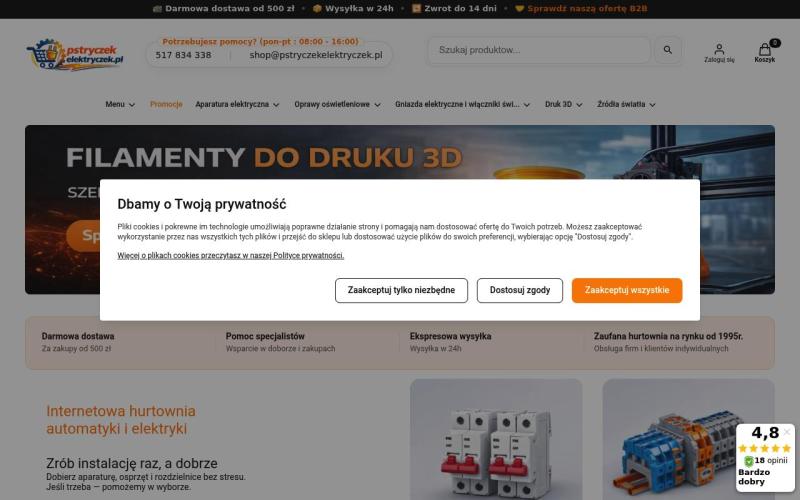 Pstryczekelektryczek - польський інтернет-магазин електротехнічної продукції та компонентів. Пропонує широкий асортимент якісних товарів для електромонтажу.