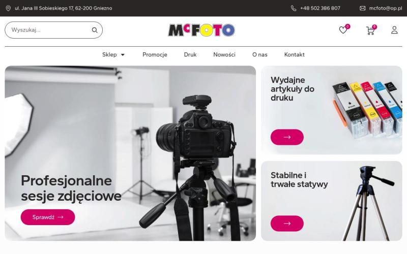 Sklep mcfoto - один з найбільших спеціалізованих магазинів фототехніки в Польщі. Пропонує широкий вибір цифрових камер, професійних об'єктивів, студійного освітлення, штативів та аксесуарів від провідних світових брендів. Магазин співпрацює як з професійними фотографами, так і з любителями фотомистецтва, забезпечуючи високу якість продукції та конкурентні ціни.