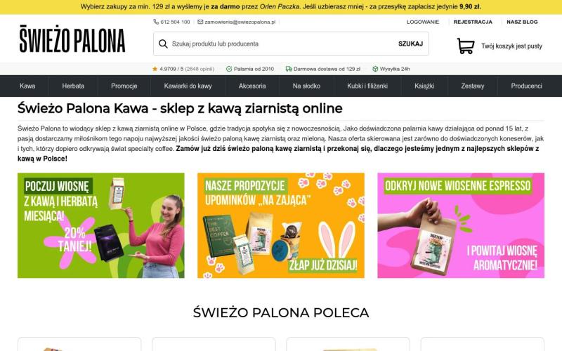 Swiezopalona - це спеціалізований польський магазин свіжеобсмаженої кави та професійного кавового обладнання. Тут ви знайдете широкий асортимент кавових зерен від найкращих польських ростерів, які забезпечують неперевершену свіжість та якість продукції. Магазин пропонує різноманітні види кави: від класичних сумішей до ексклюзивних моносортів з різних куточків світу. Також доступне професійне обладнання для приготування кави.